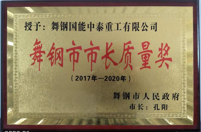 熱烈祝賀:舞鋼國能中泰重工有限公司被舞鋼市人民政府授予2017年度“舞鋼市市長質(zhì)量獎”
